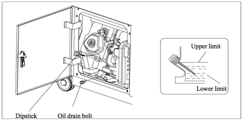 - Controleer de olie stand op de peilstok (indien nodig bijvullen met SAE 10W 40).
