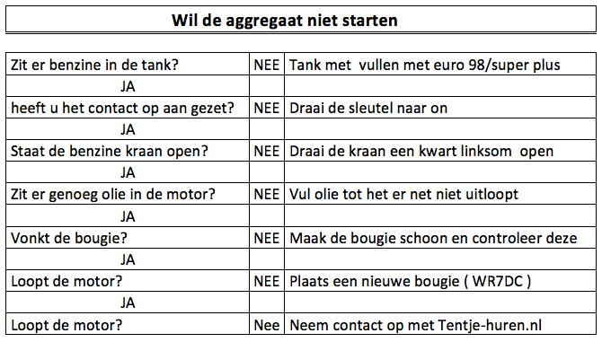 * Controleer punt 2, 3 en 4 onder starten van de aggregaat.