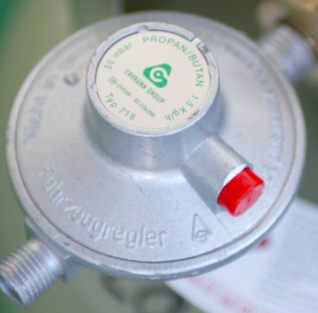 Aan of op de gasdrukregelaar zit soms een drukknopje geel, blauw, rood of zwart van kleur. Nadat u de gaskraan heeft opengedraaid moet u deze (extra beveiliging) voor gebruik even indrukken.